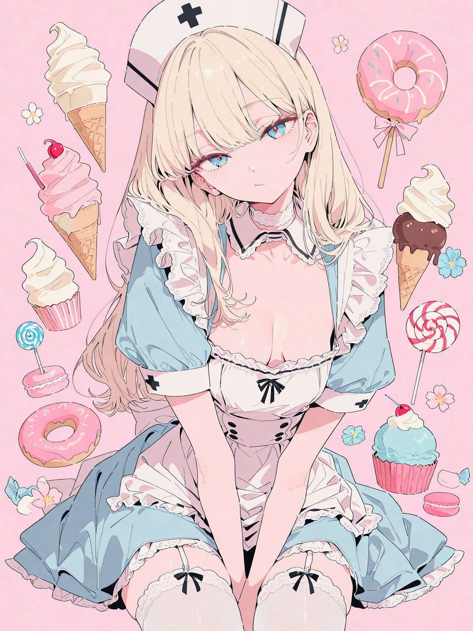 Bu illüstrasyonu cosplay yapan bir kızın fotoğrafını oluşturun, arka plan Comiket'te ayarlandı